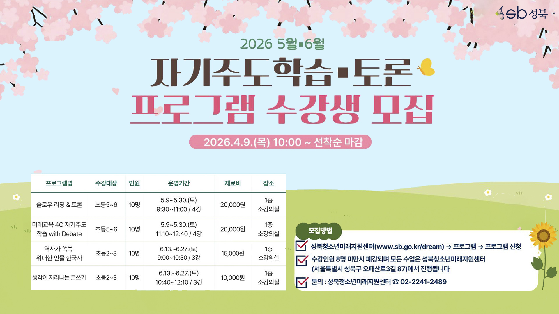 260405 5월,6월 자기주도학습·토론 프로그램 수강생 모집