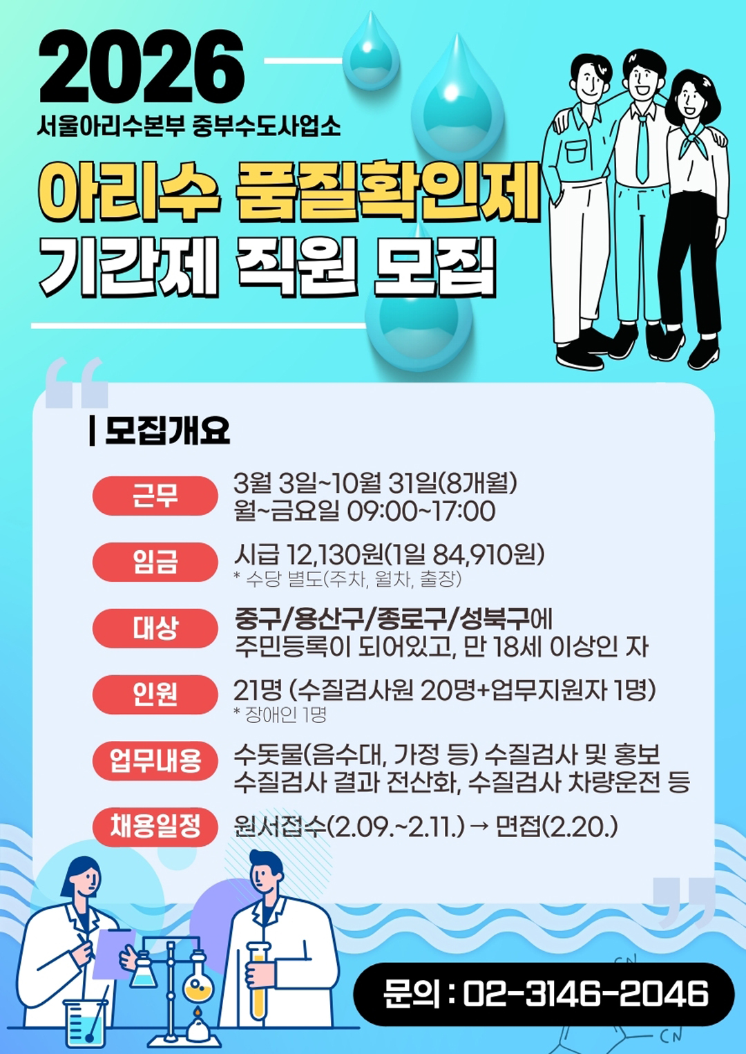 260130 2026년 아리수품질확인제 기간제노동자 채용공고