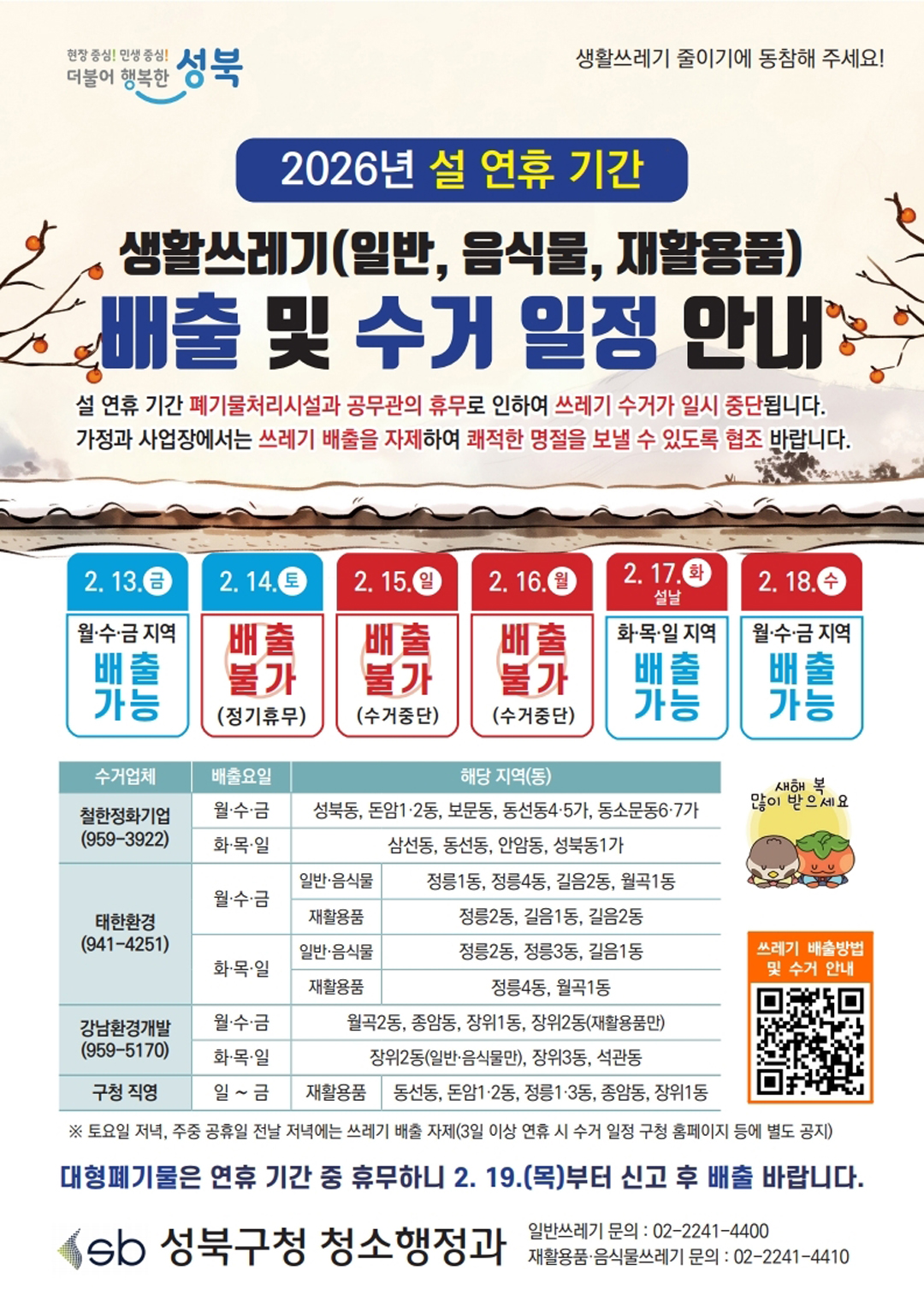 260202 설 연휴 기간 생활쓰레기 수거 일정 안내