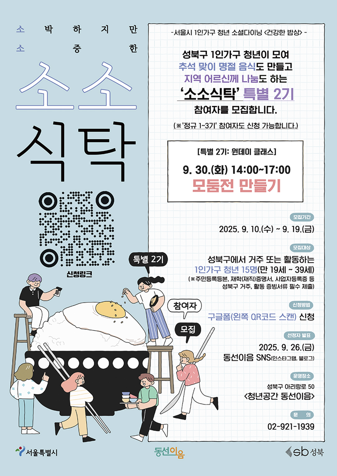 250910 서울시 1인가구 청년 소셜다이닝 '건강한 밥상'-소소식탁 특별 2기 참여자 모집