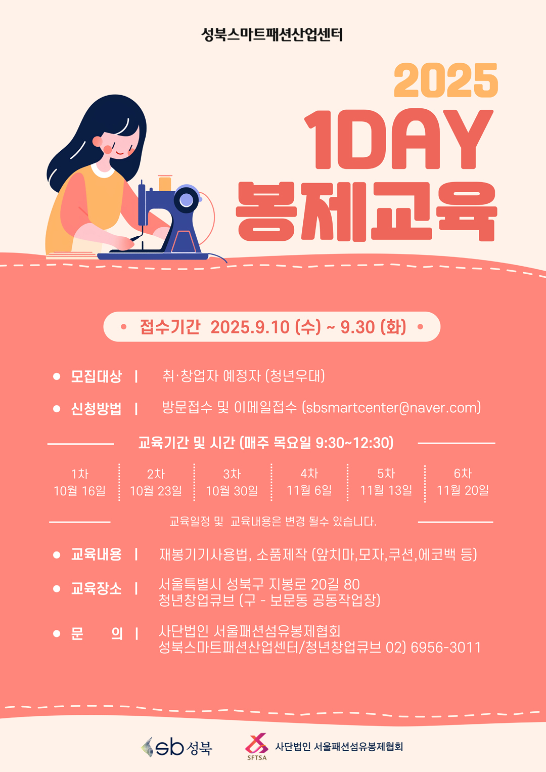 250910 성북스마트패션산업센터 2025년 하반기 원데이 봉제교육 교육생 모집