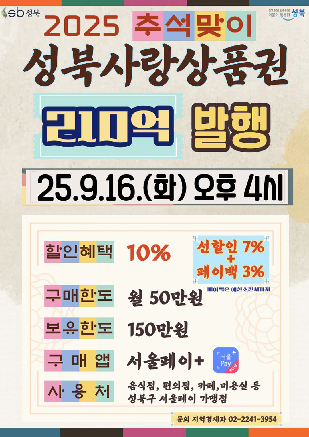 250911 2025년 추석맞이 성북사랑상품권 발행 & 페이백 이벤트