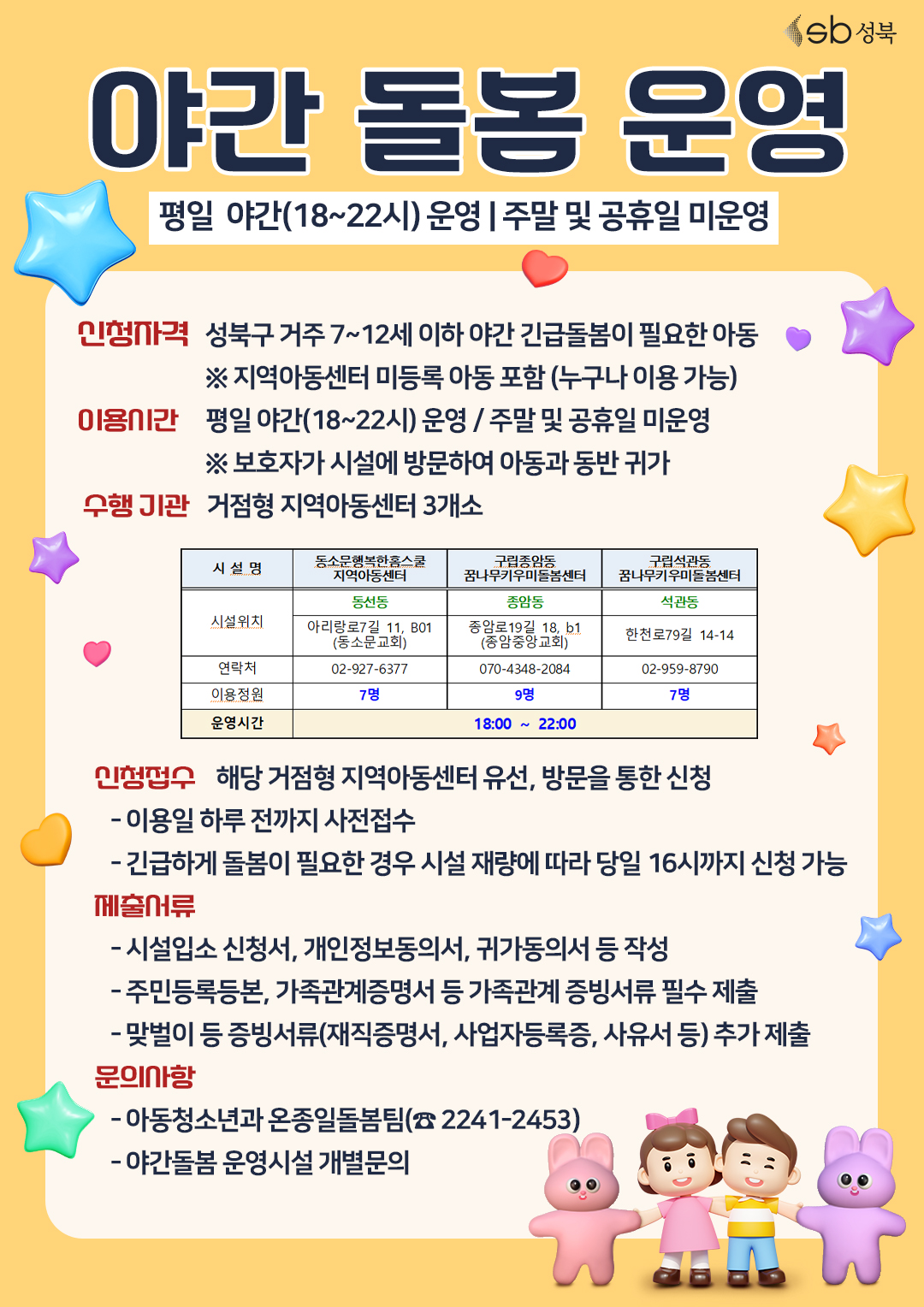 251001 거점형 지역아동센터 야간돌봄 운영 안내