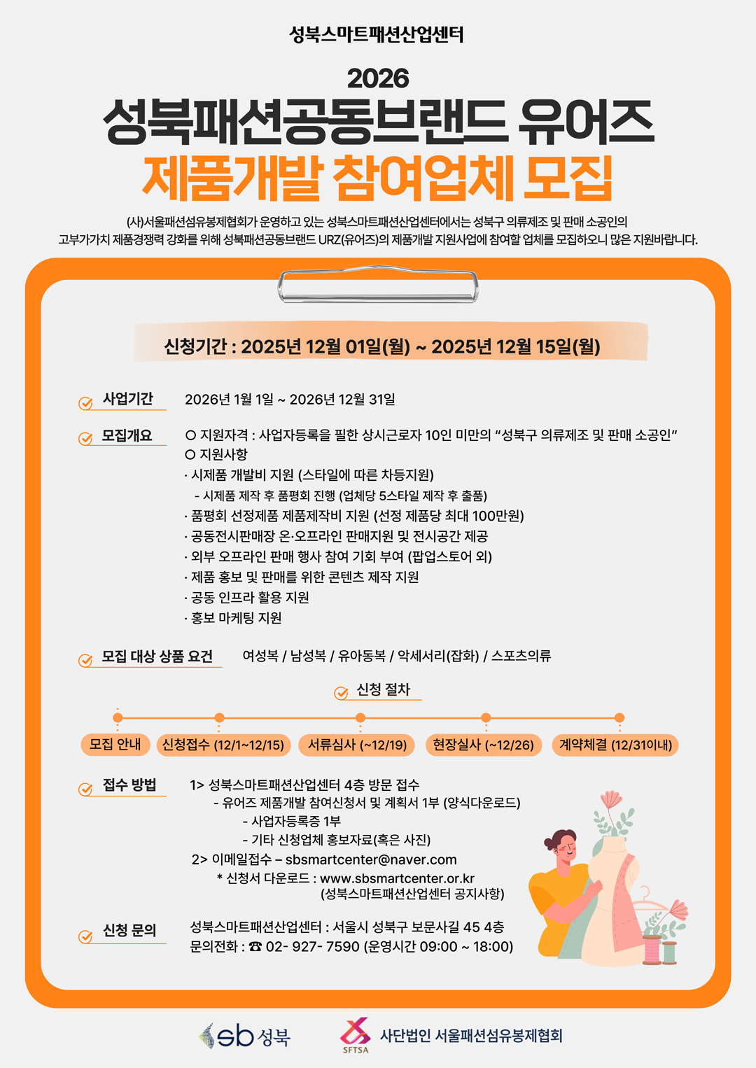 251208 2026년 성북패션공동브랜드 URZ(유어즈) 제품 개발업체 모집