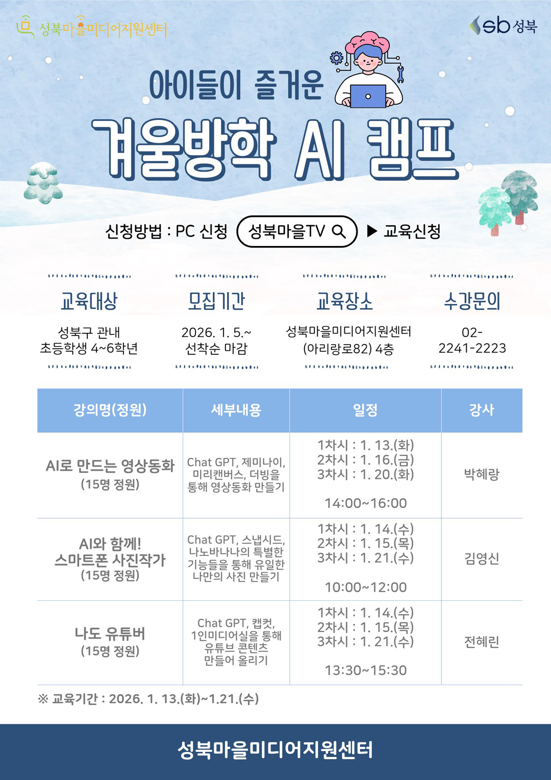 251230 겨울방학 미디어 체험 프로그램(1월) 신청 안내