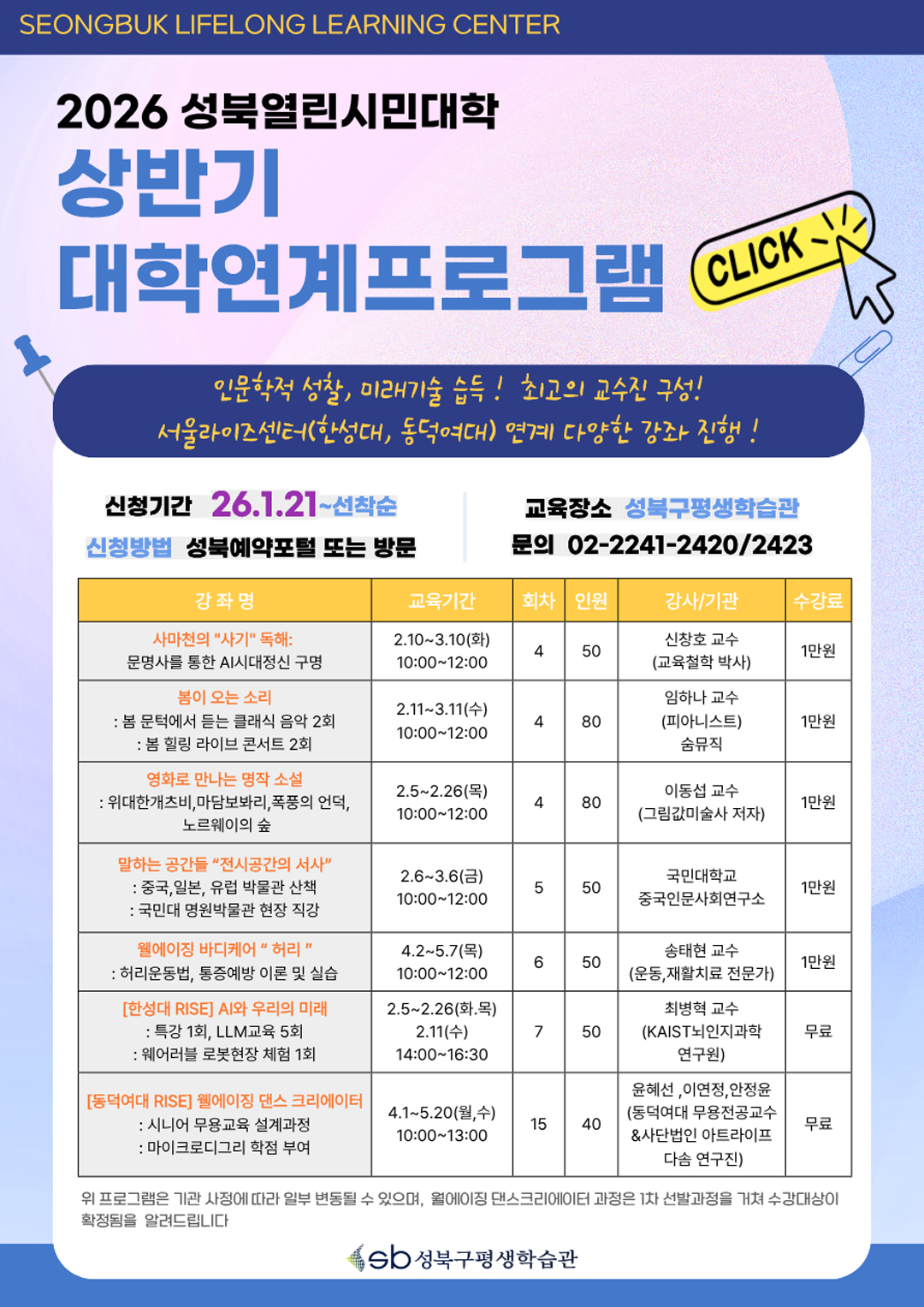 260113 성북열린시민대학 2026 상반기 대학연계 프로그램 신청 안내
