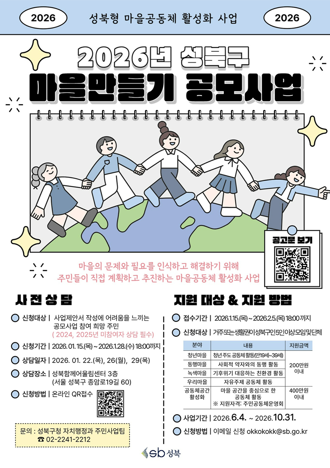 260116 2026년 성북구 마을만들기 공모사업 참여 모임 및 단체 모집