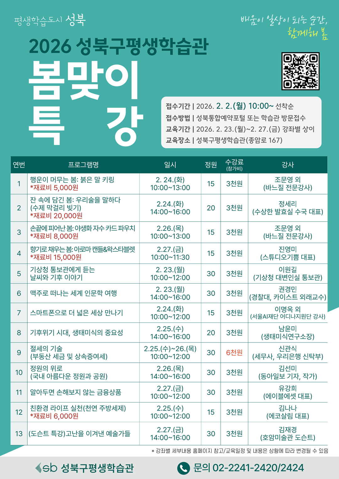 260121 2026 성북구평생학습관 봄맞이 특강 수강생 모집