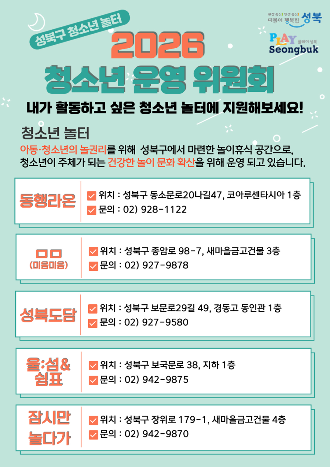 260122 성북구 청소년놀터 청소년운영위원회 모집
