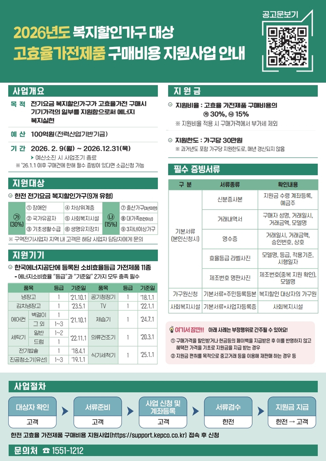260318 취약계층 대상 한전 고효율기기 지원사업 안내