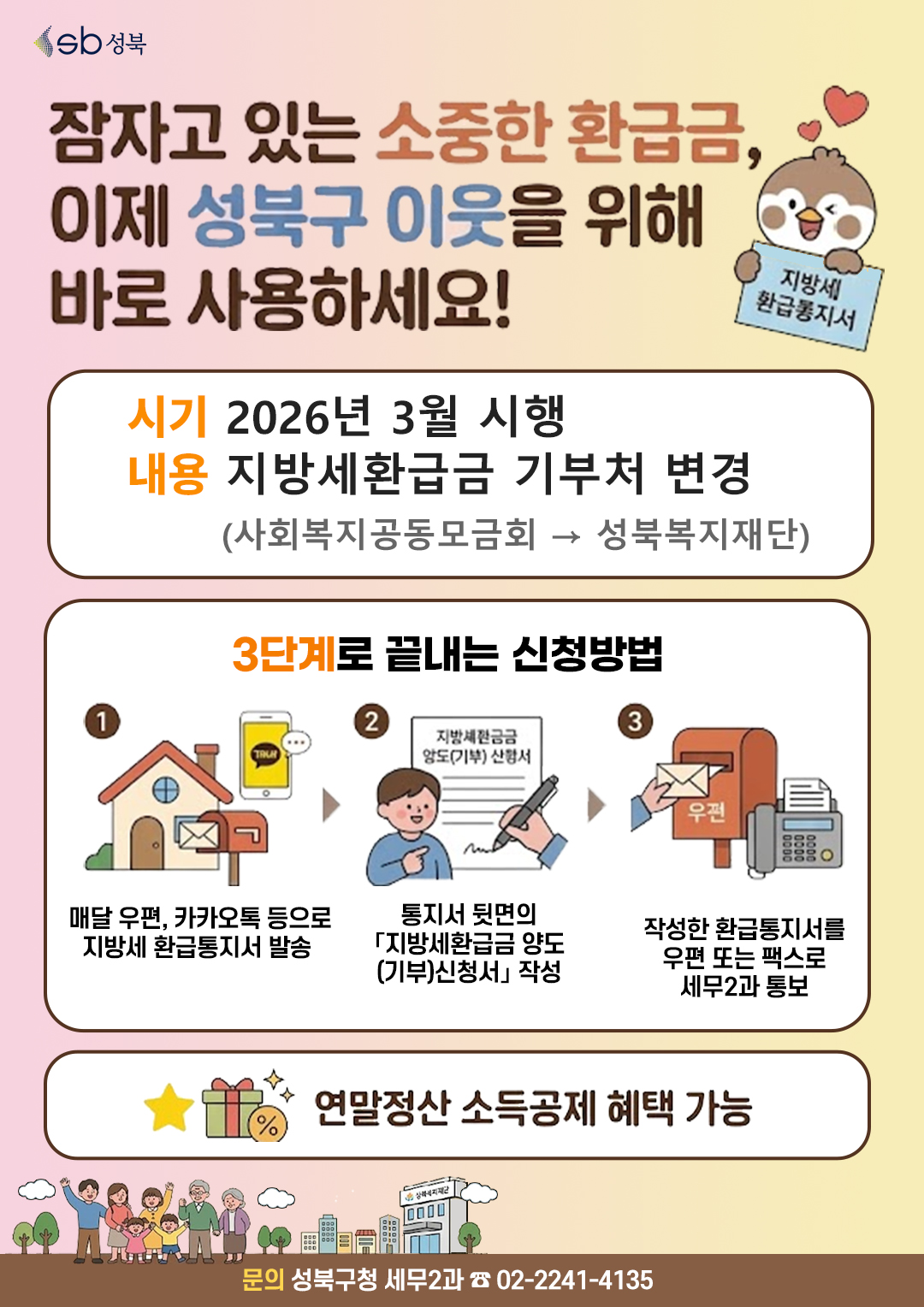 260322 잠자고 있는 소중한 환급금, 이제 성북구 이웃을 위헤 바로 사용하세요