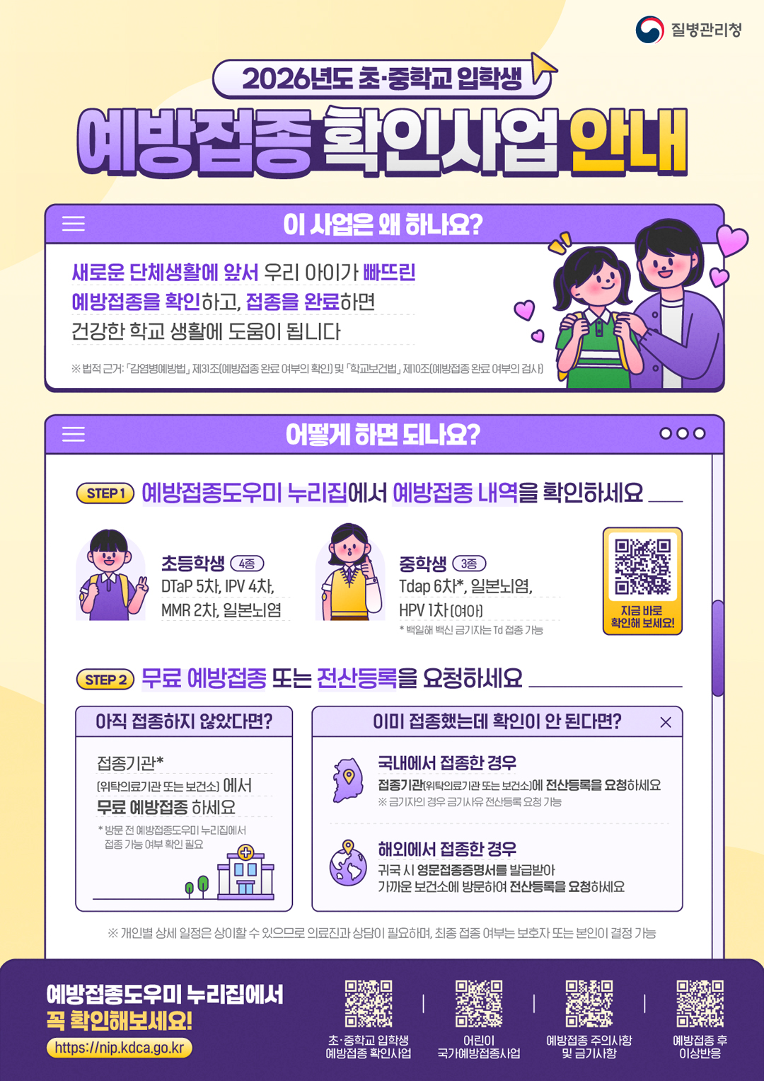 260305 2026년도 초중학교 입학생 예방접종 확인하세요!