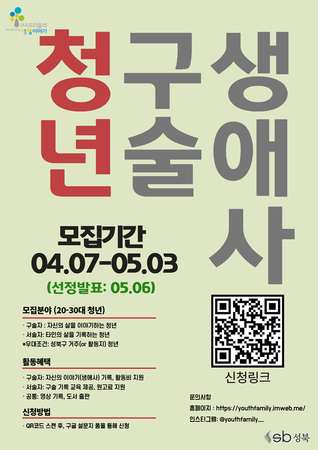 260409 성북구 사각지대 청년 지원사업 <청년구술생애사> 참여자 모집
