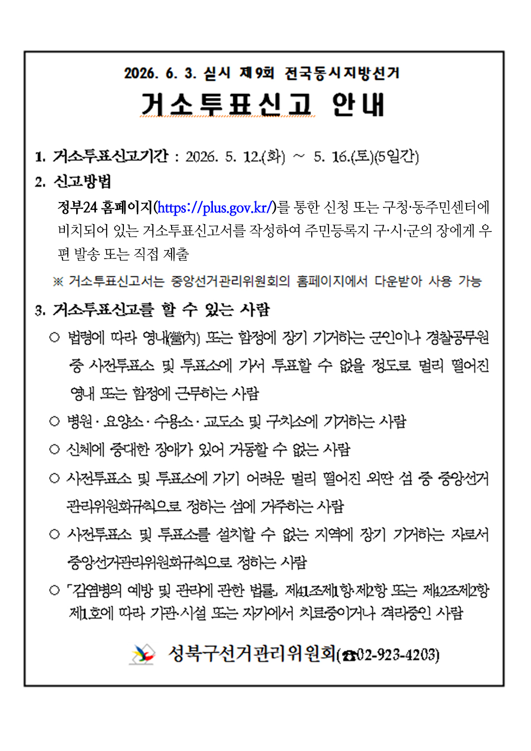 260416 제9회 전국동시지방선거 거소투표신고 안내
