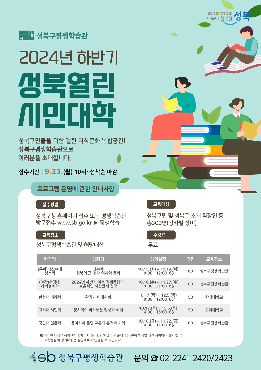 240911 2024년 하반기 '성북열린시민대학' 수강생 모집