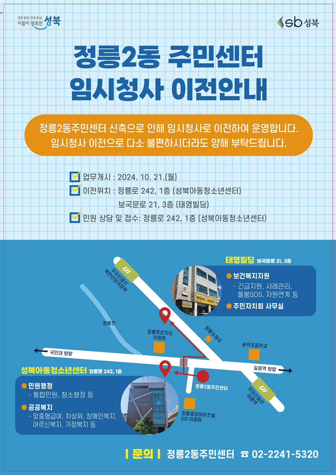 240911 '정릉2동 주민센터 임시청사 이전 안내'