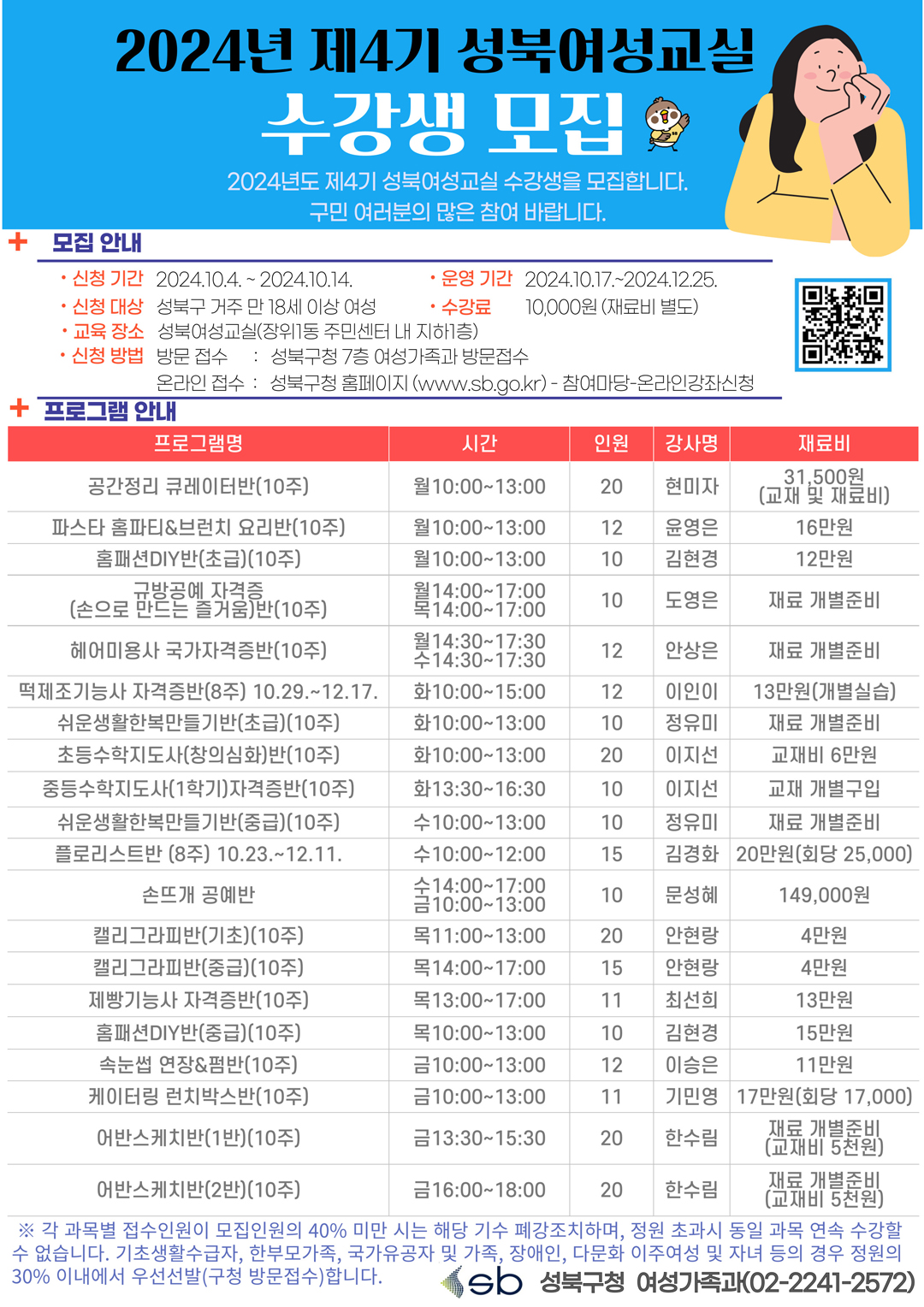 241006 2024년 제4기 성북여성교실 수강생 모집