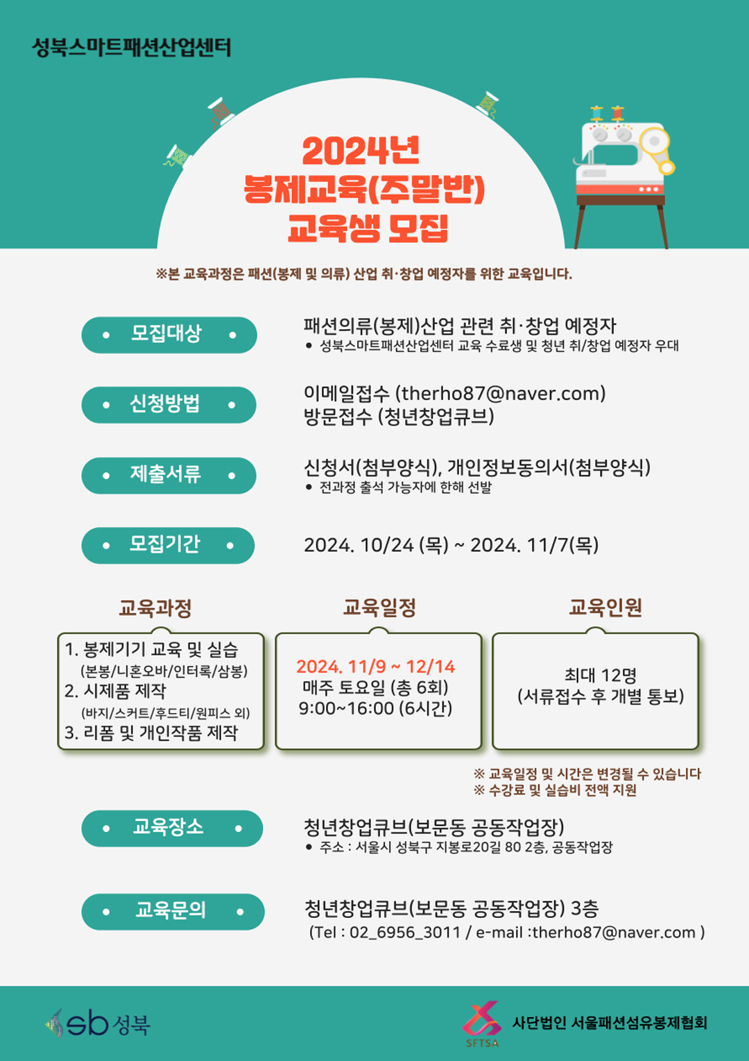 241028 2024 하반기 봉제교육 주말반 교육생 모집