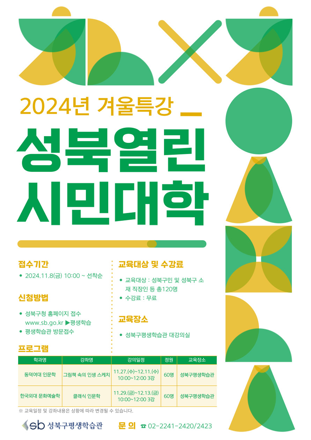 241101 2024년 겨울특강 '성북열린시민대학' 수강생 모집
