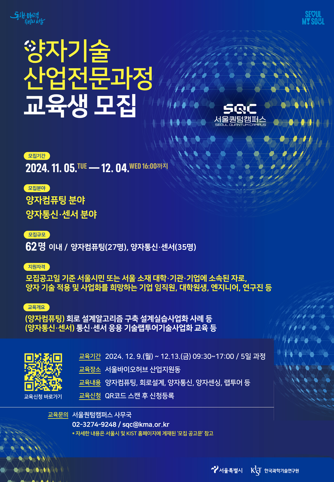 241202 서울퀀텀캠퍼스 ‘양자기술 산업전문과정’ 교육생 모집