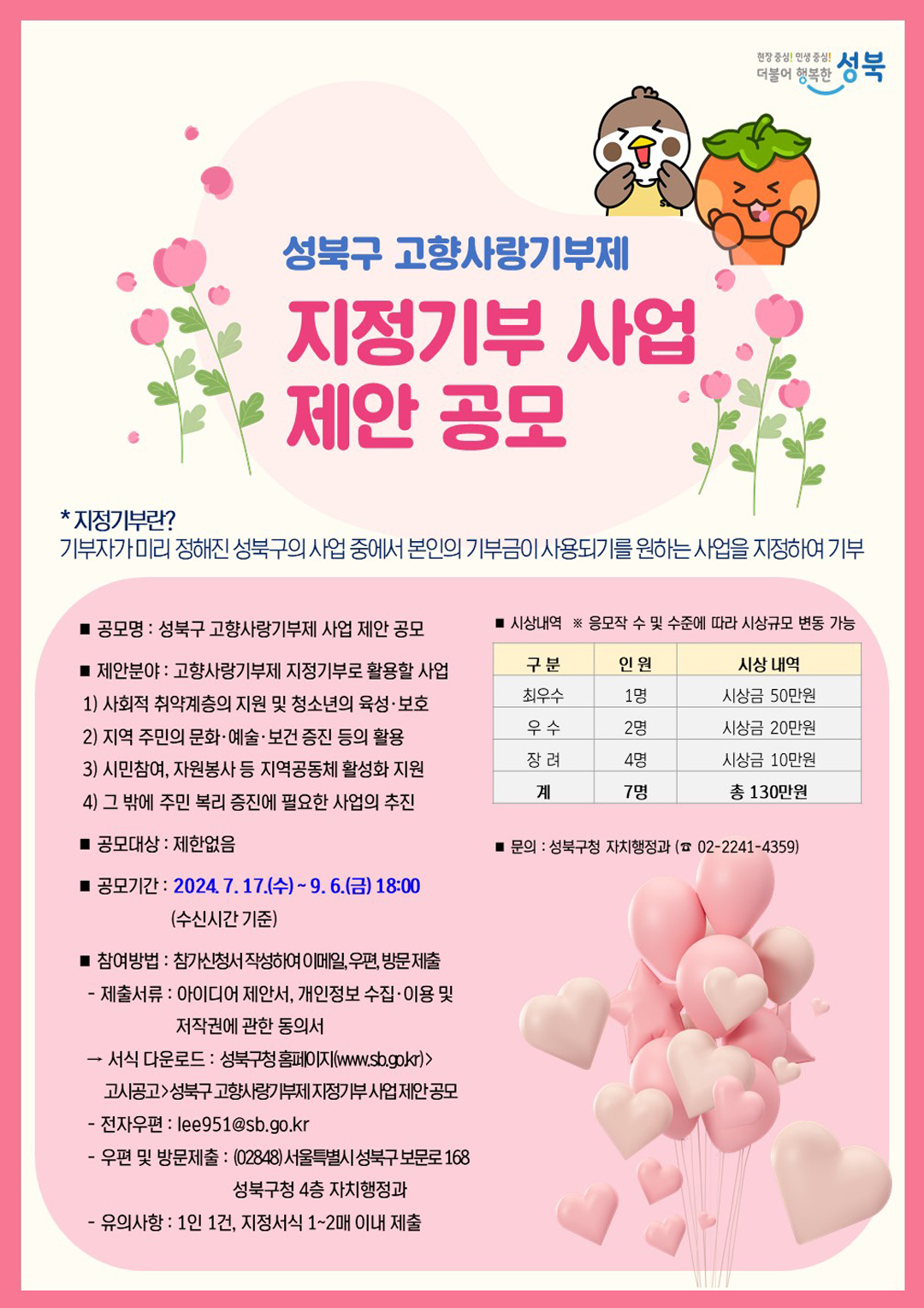 성북구 고향사랑기부제 지정기부 사업제안 공모