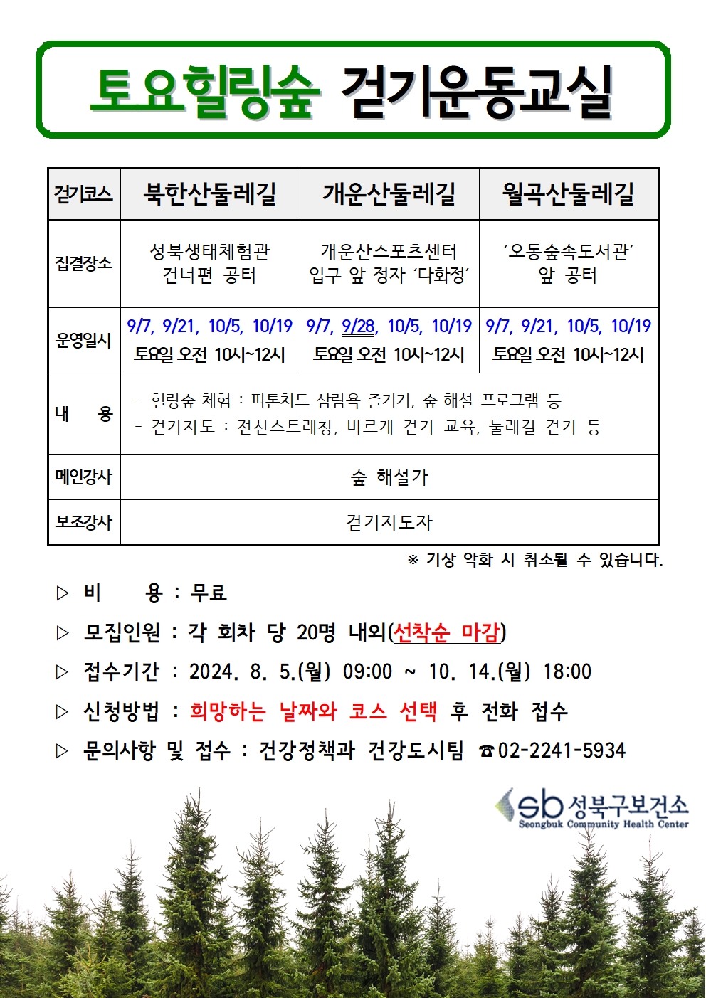 토요힐링숲 걷기운동교실 참가자 모집
