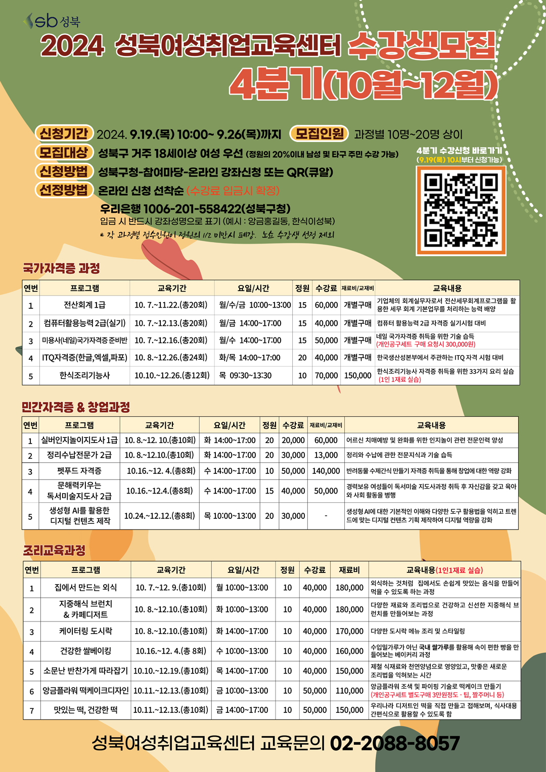 240909 성북여성취업교육센터 4분기 수강생 모집
