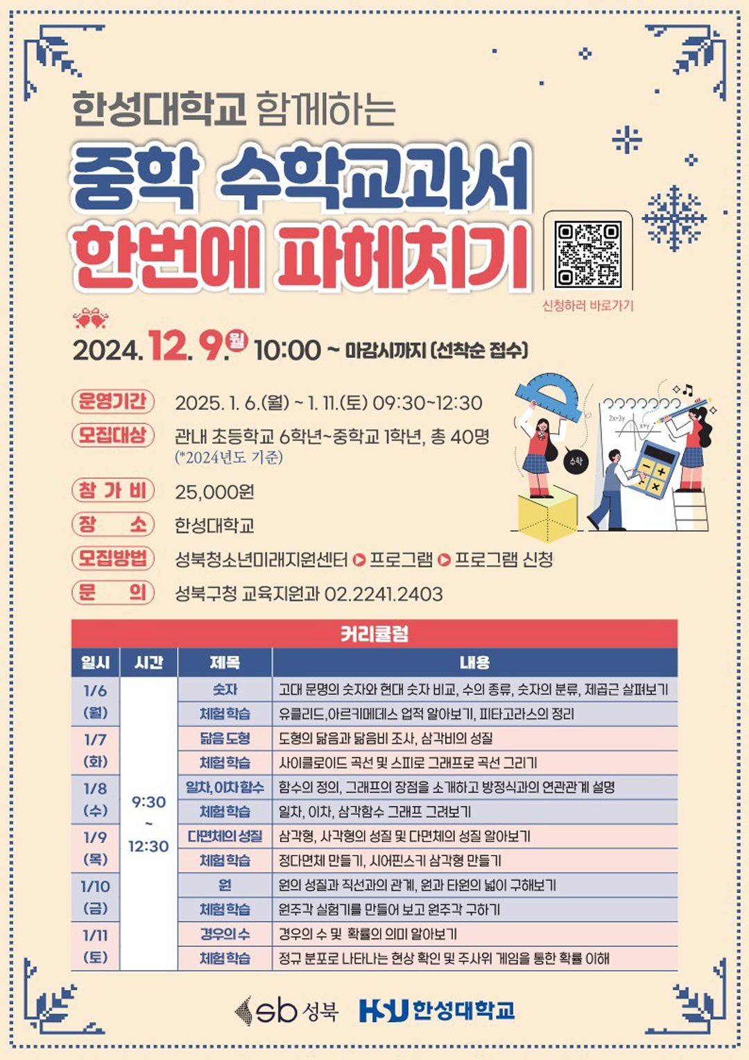 2024 한성대학교 함께하는 중학 수학교과서 한번에 파헤치기 포스터-R0-복사_1.jpg / 1,009.4K