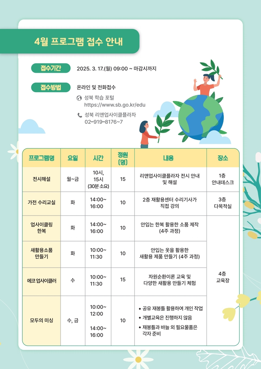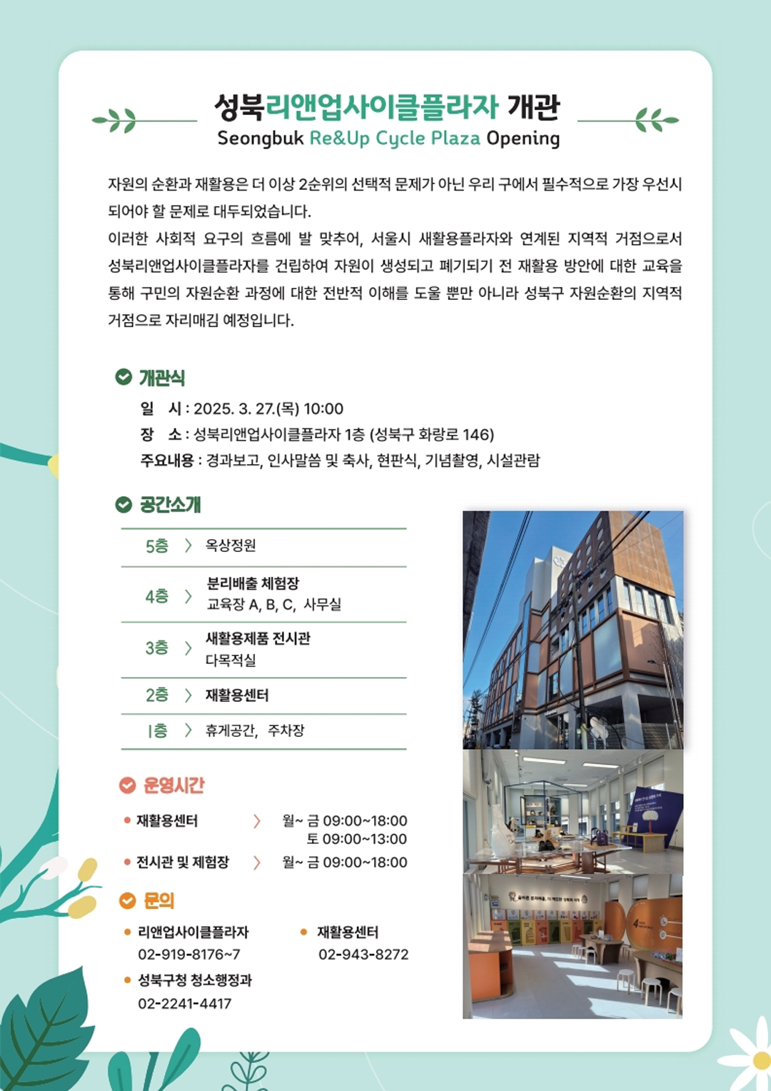 250307 성북리앤업사이클플라자 개관 및 프로그램 접수