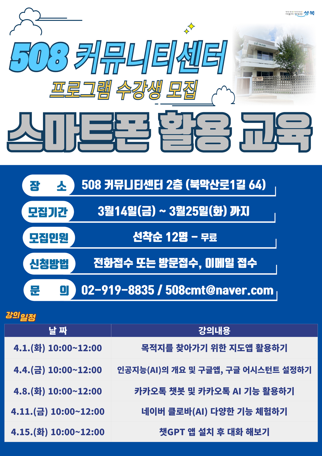 250312 508커뮤니티센터 스마트폰 활용 교육 안내