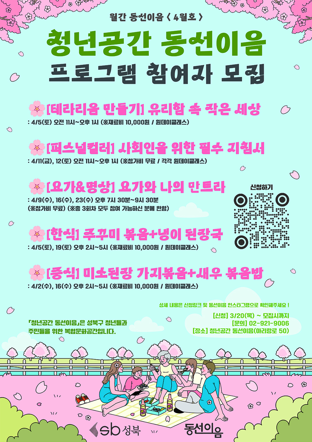 250319 청년공간 동선이음 4월 프로그램 참여자 모집