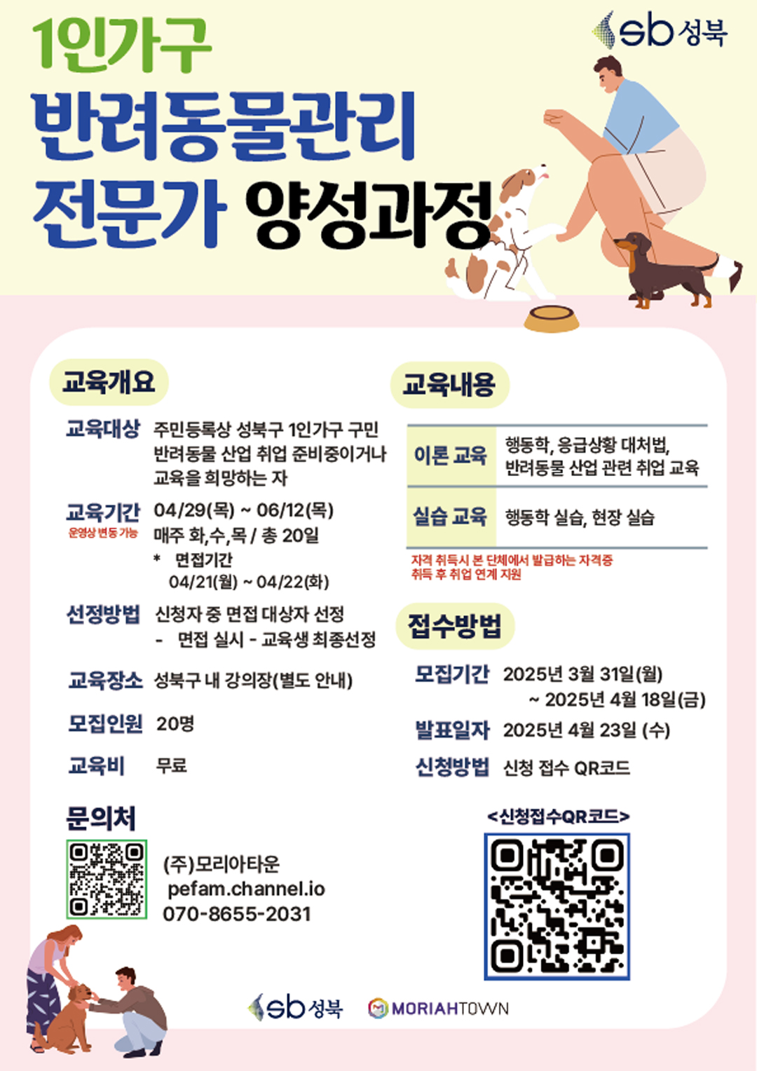 250403 1인가구 반려동물 전문인력 양성교육 참여자 모집