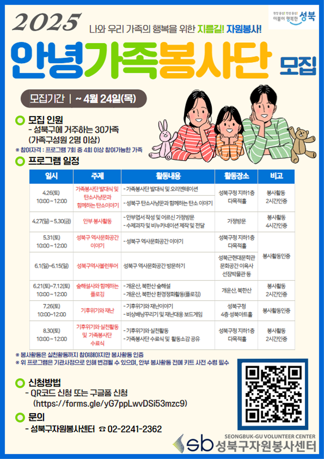 250410 2025 안녕가족봉사단 참여자 모집 안내