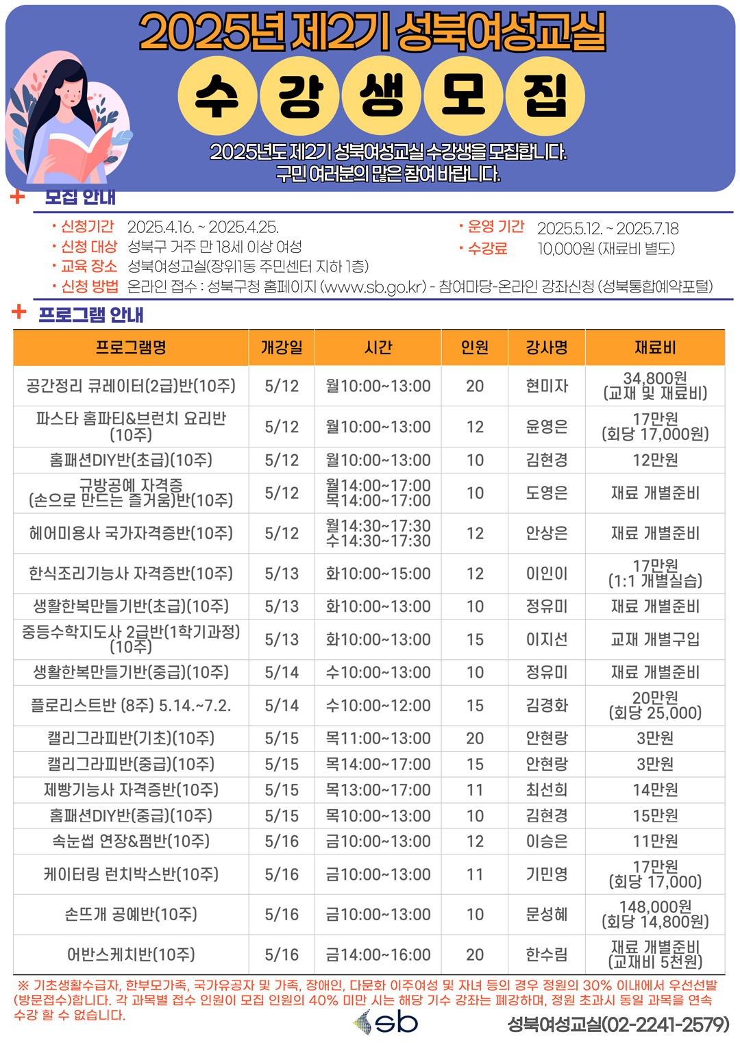 250411 제2기 성북여성교실 수강생 모집