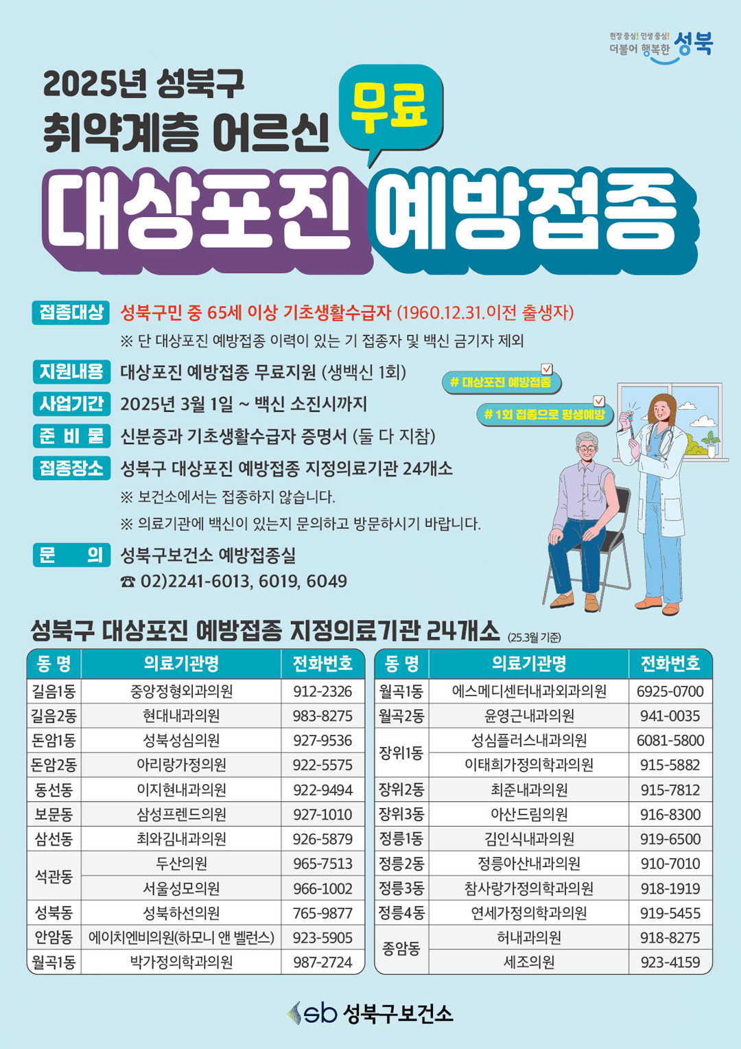 250430 성북구 취약계층 어르신 대상포진 무료 예방접종 안내
