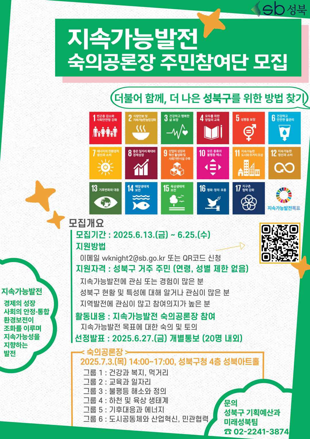 250617 성북구 지속가능발전 숙의공론장 주민참여단 모집