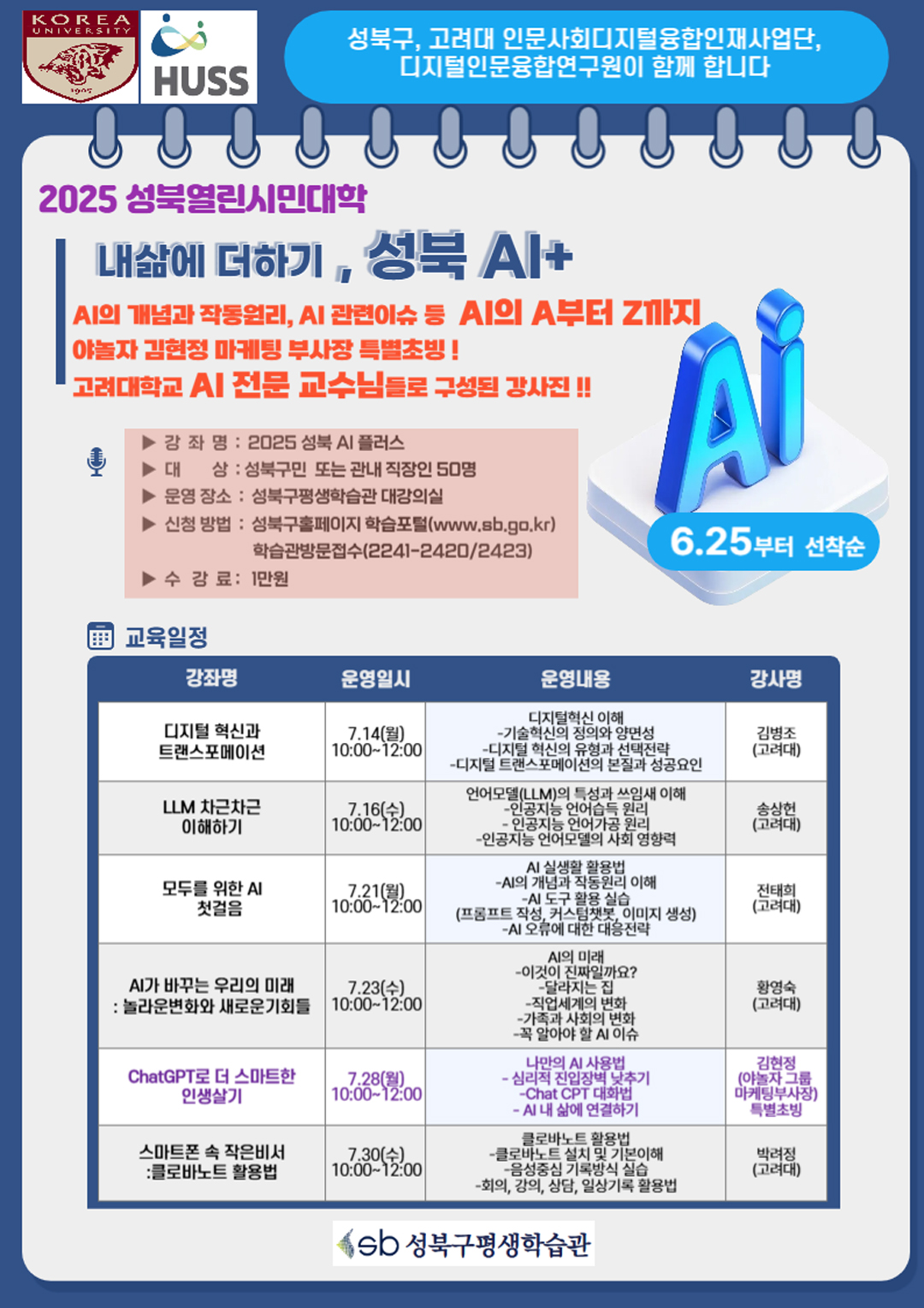 250623 성북열린시민대학「내 삶에 더하기, 성북 AI+」 참가자 모집