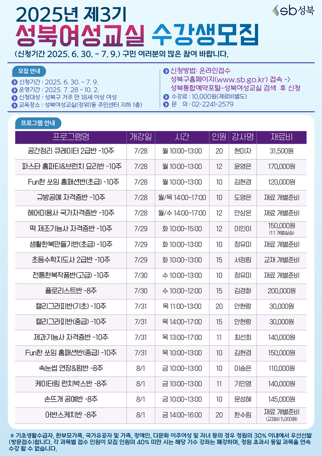 250624 제3기 성북여성교실 수강생 모집
