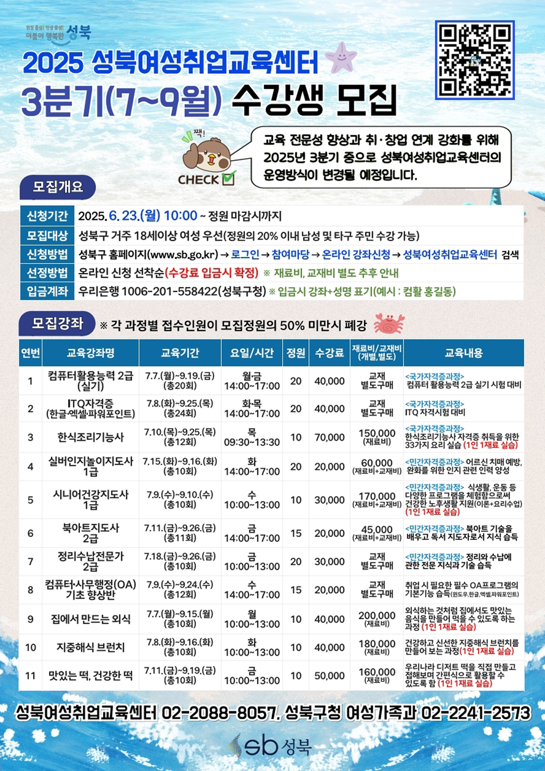 250624 성북여성취업교육센터 2025. 3분기 수강생 모집