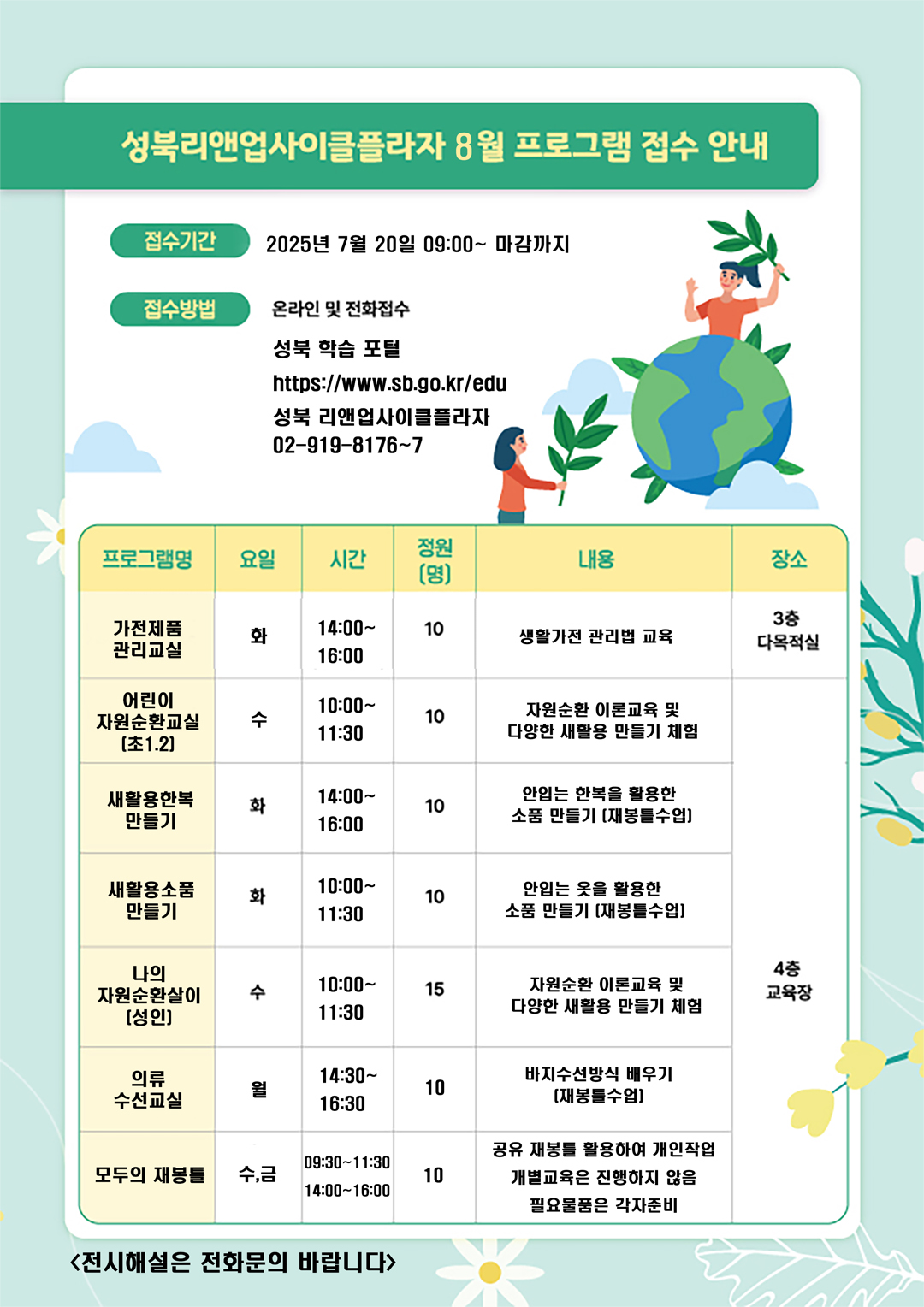 250720 성북리앤업사이클플라자 8월 환경교육프로그램 접수 및 안내