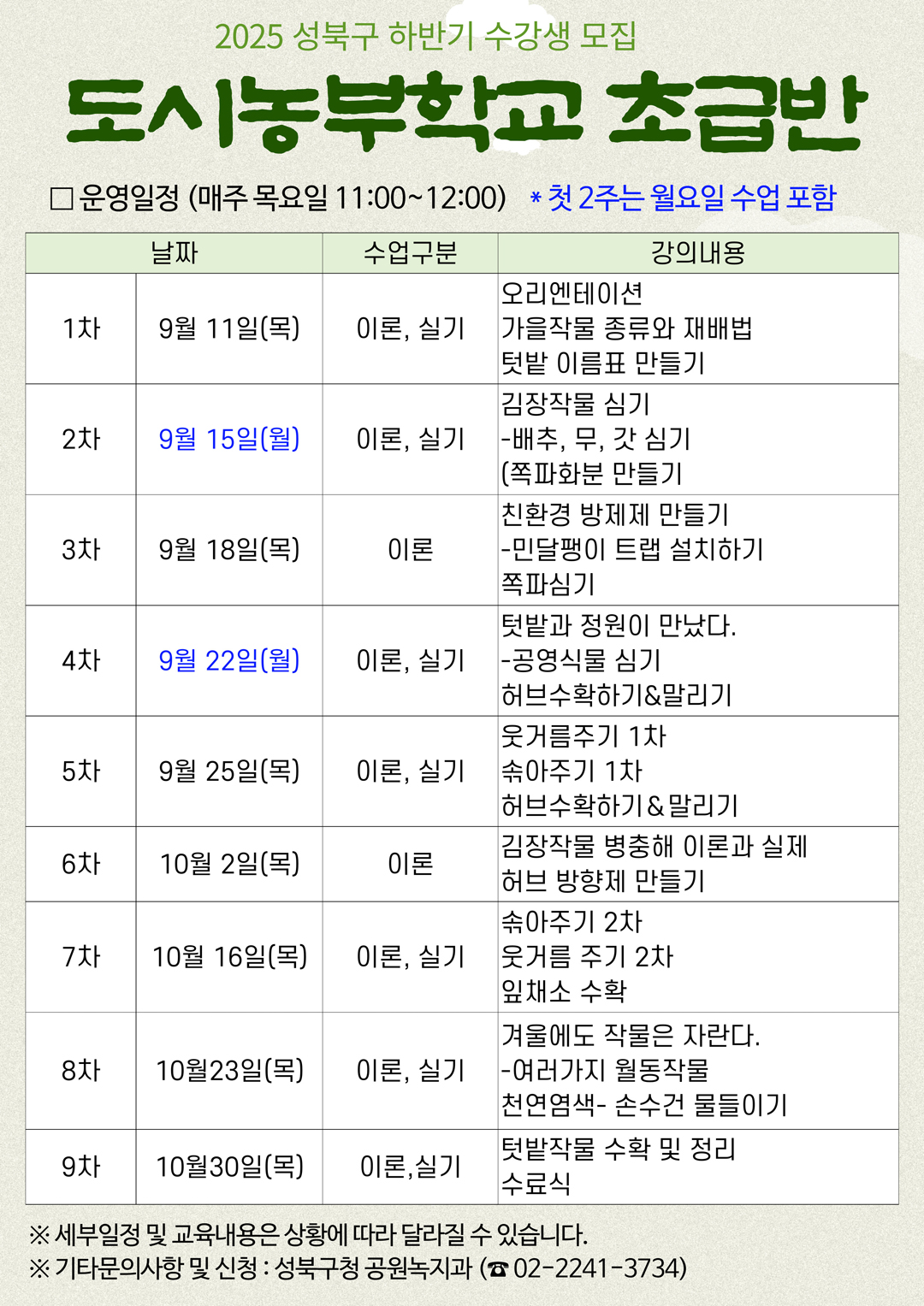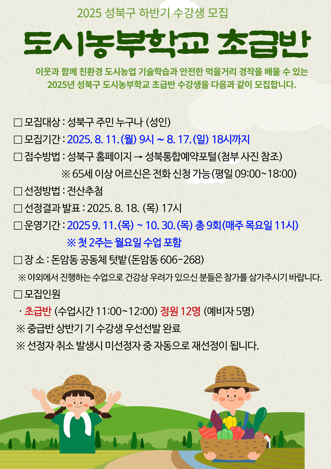 250806 하반기 도시농부학교 초급반 수강생 모집