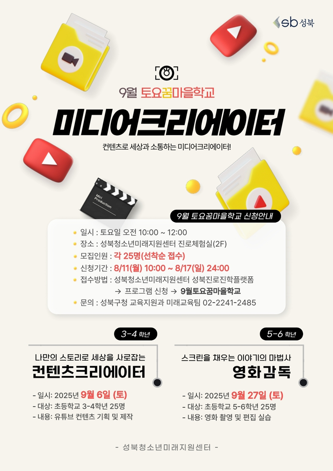 250808 9월 토요꿈마을학교 '세상과 소통하는 미디어크리에이터' 참가자 모집