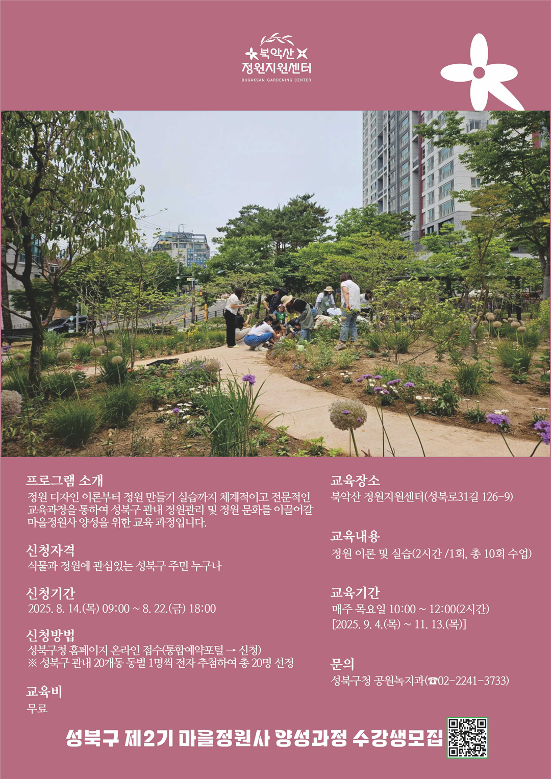 250811 성북구 제2기 마을정원사 양성 프로그램 참여자 모집